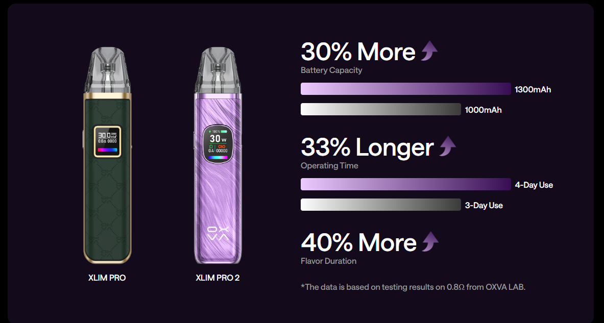 هناك بعض الفروقات المهمة بين الجهازين اهمها سعة البطارية و وقت التشغيل و تحسينات على وصول النكهة